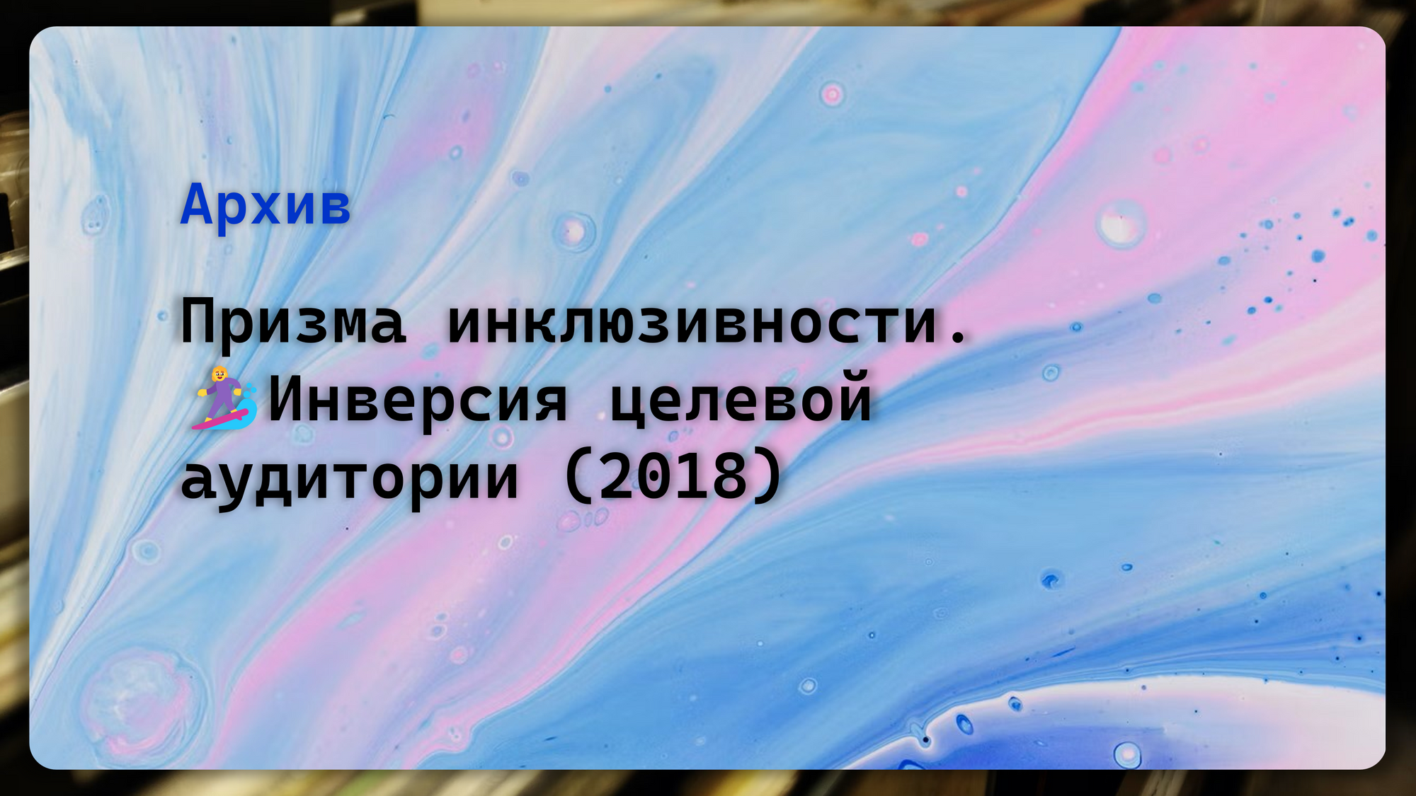 Призма инклюзивности. 🏄♀️ Упражнение. Инверсия целевой аудитории (2018)