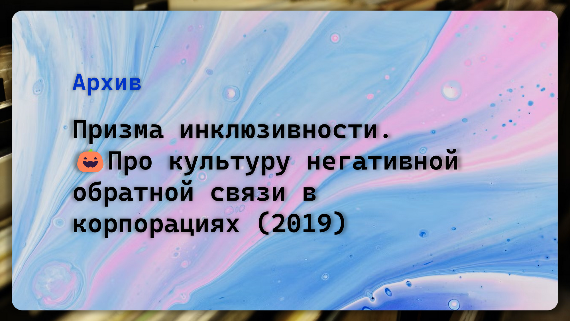 Призма инклюзивности. Кейс 🎃. Про культуру негативной обратной связи в корпорациях (2019)