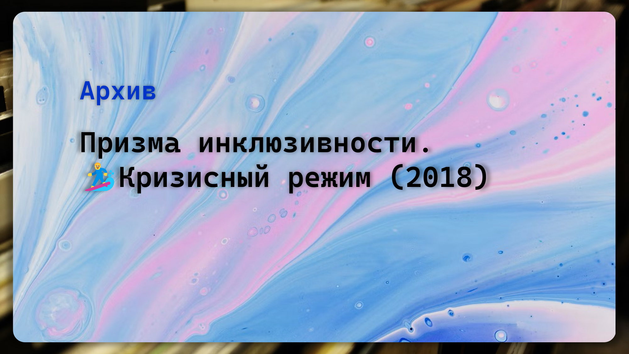Призма инклюзивности.🏄♂️ Упражнение. Кризисный режим (2018)