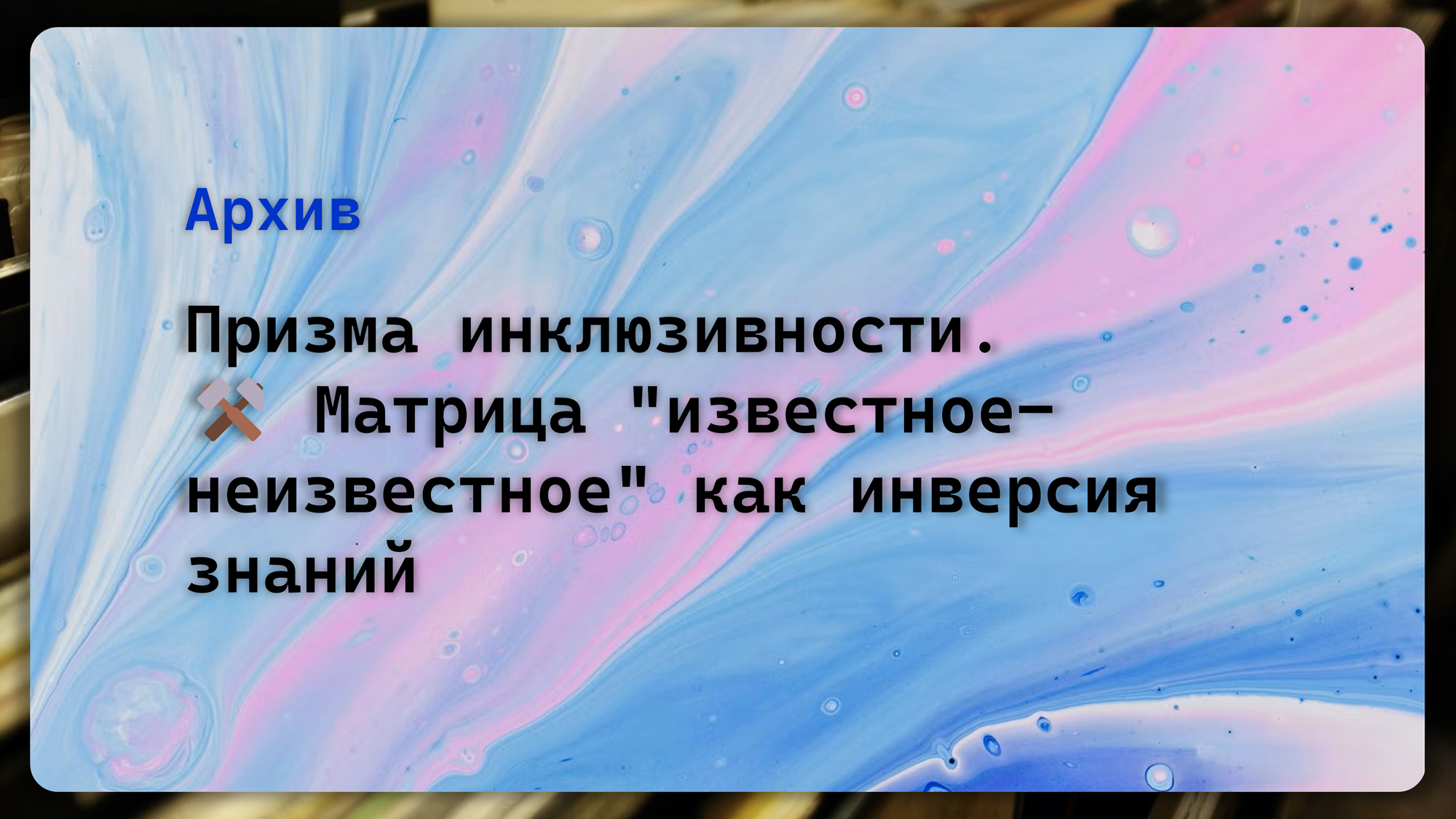Призма инклюзивности. Матрица "известное-неизвестное" как инверсия знаний