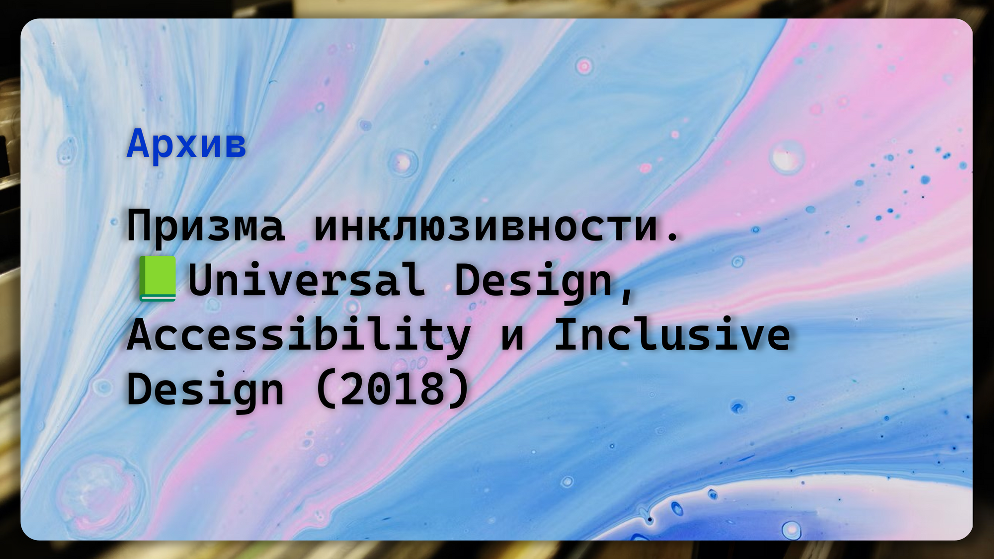 Призма инклюзивности. Теория 📗. Universal Design, Accessibility и Inclusive Design (2018)