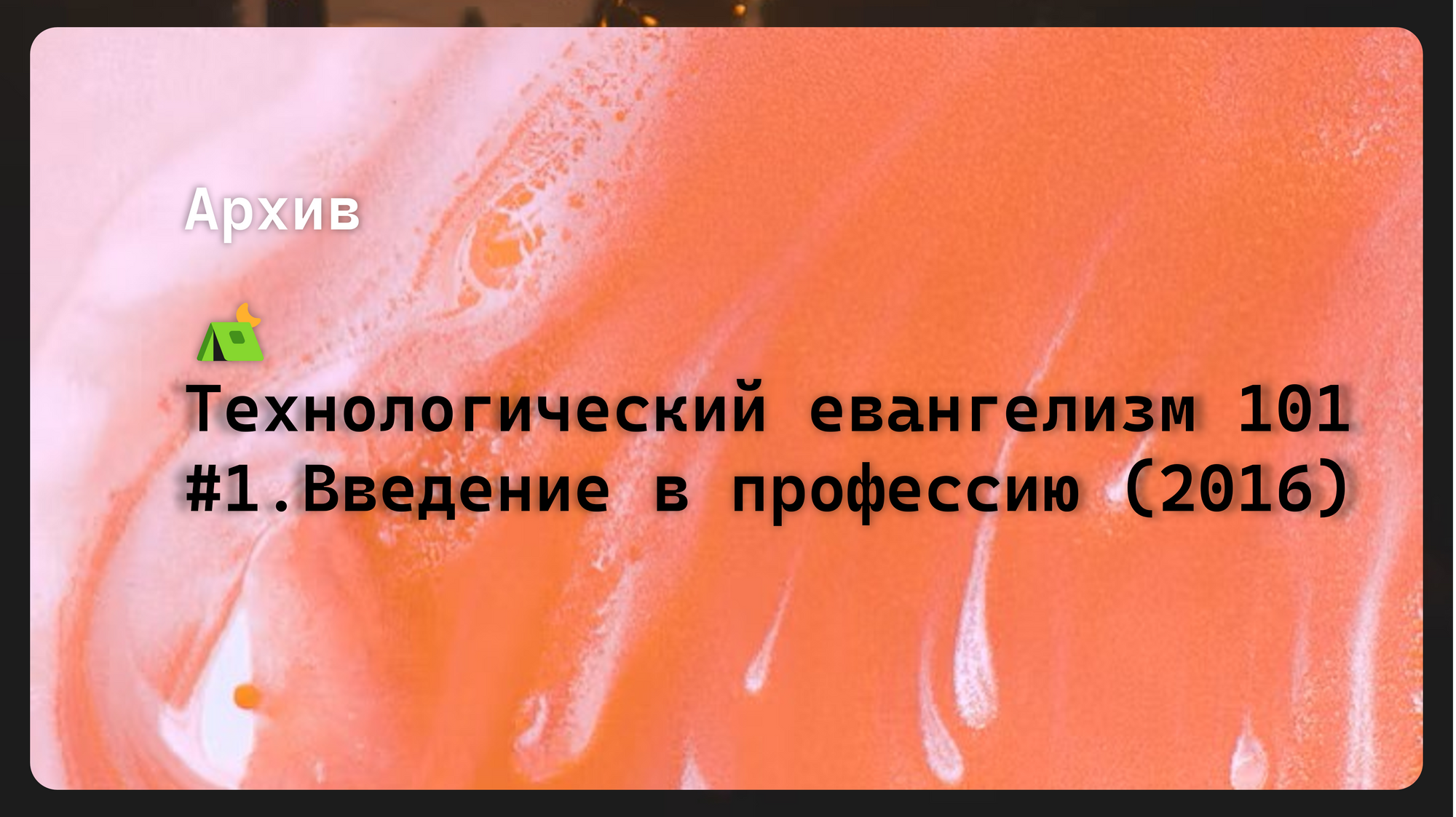 ⛺Технологический евангелизм 101 #1. Введение в профессию (2016)