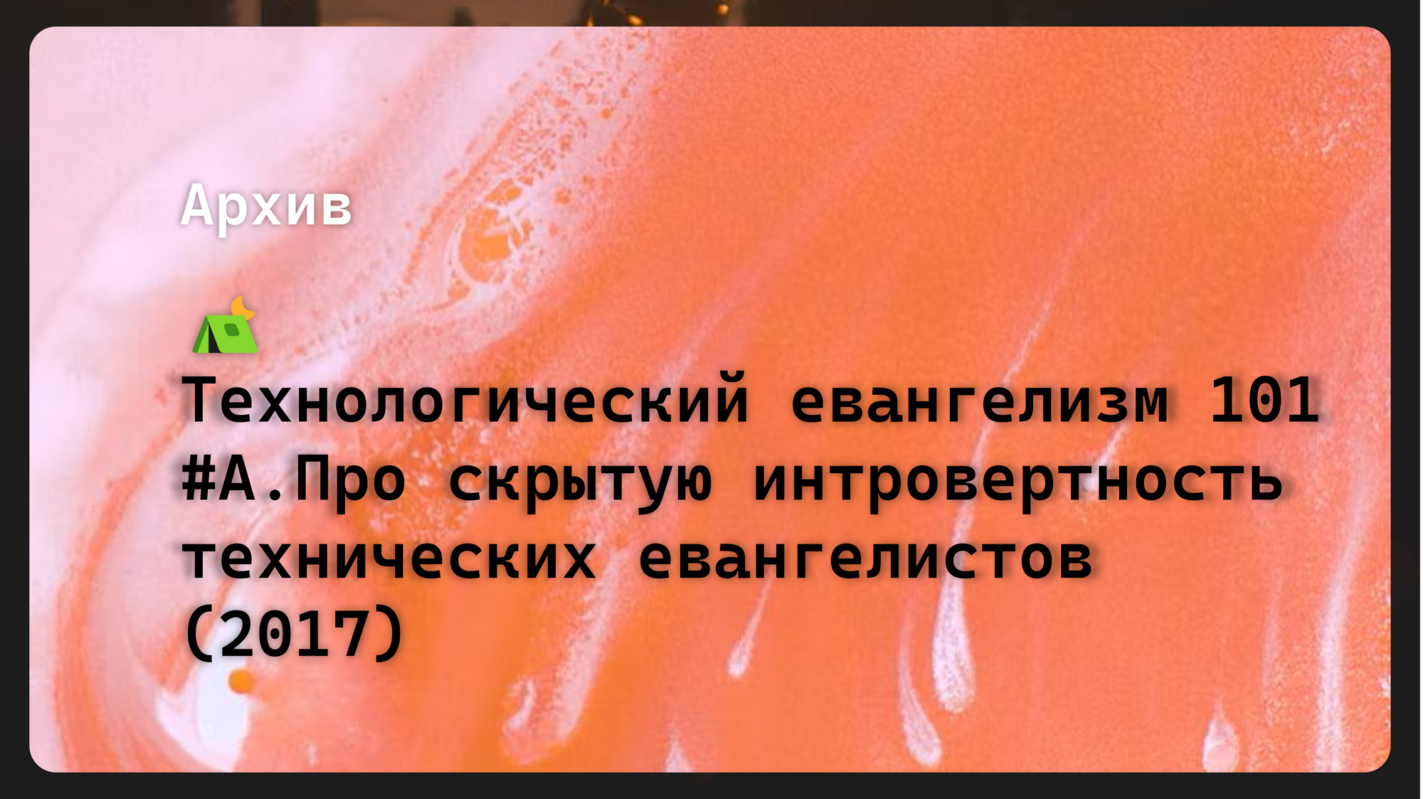 ⛺Технологический евангелизм 101 #A. Про скрытую интровертность технических евангелистов (2017)