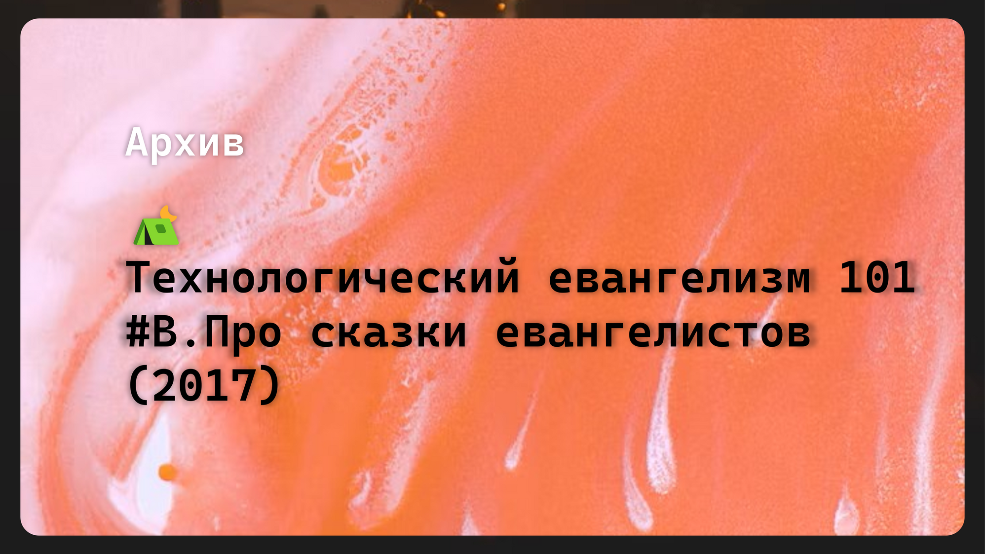⛺Технологический евангелизм 101 #B. Про сказки евангелистов (2017)