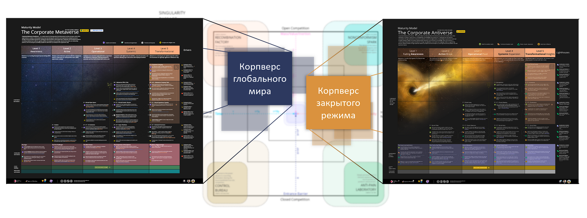 5/ Мы называем этот объект корпоративным антиверсом (Corporate Antiverse), или сокращенно корп*верс (Corp*Verse). Если из контекста понятно, о чем идет речь, можно просто писать “корпверс”. Если речь идет о двух корверсах сразу, то удобнее тоже писать “корпверс”, без звездочки. Вообще, чем дальше мы продвигались в нашем исследовании, тем больше мы убеждались, что обе модели являются необходимыми частями чего-то большего. Но, важно не запутаться, это не две половины инь-янь. Это – другое!