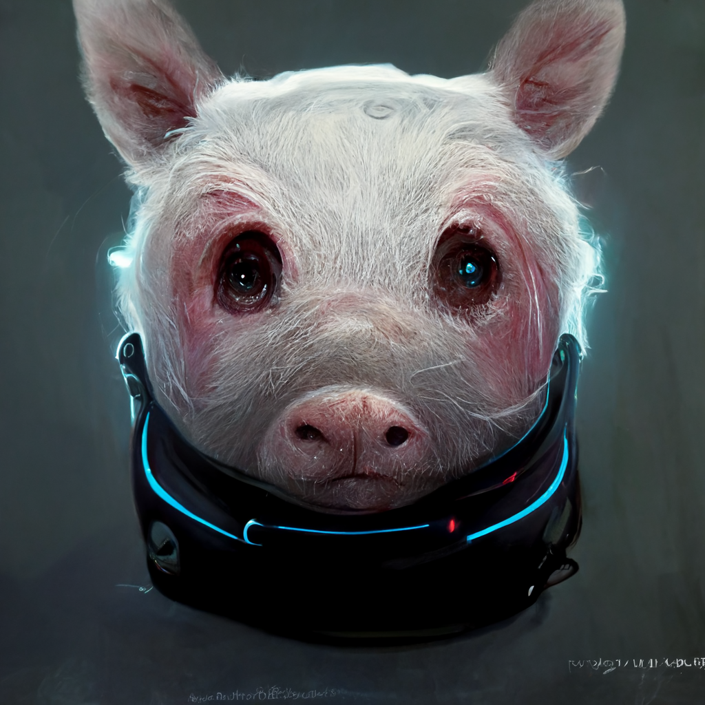Midjourney (что-то знает): a happy pig with neuro interface from Elon Musk