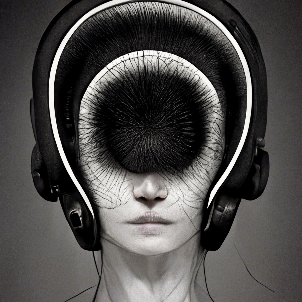 Midjourney: the headphones with neuro interfaces streaming internal voices