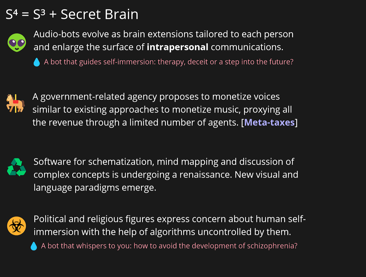 - S⁴ = S³ + Secret Brain. Spatial thinking for building ideas and solving problems