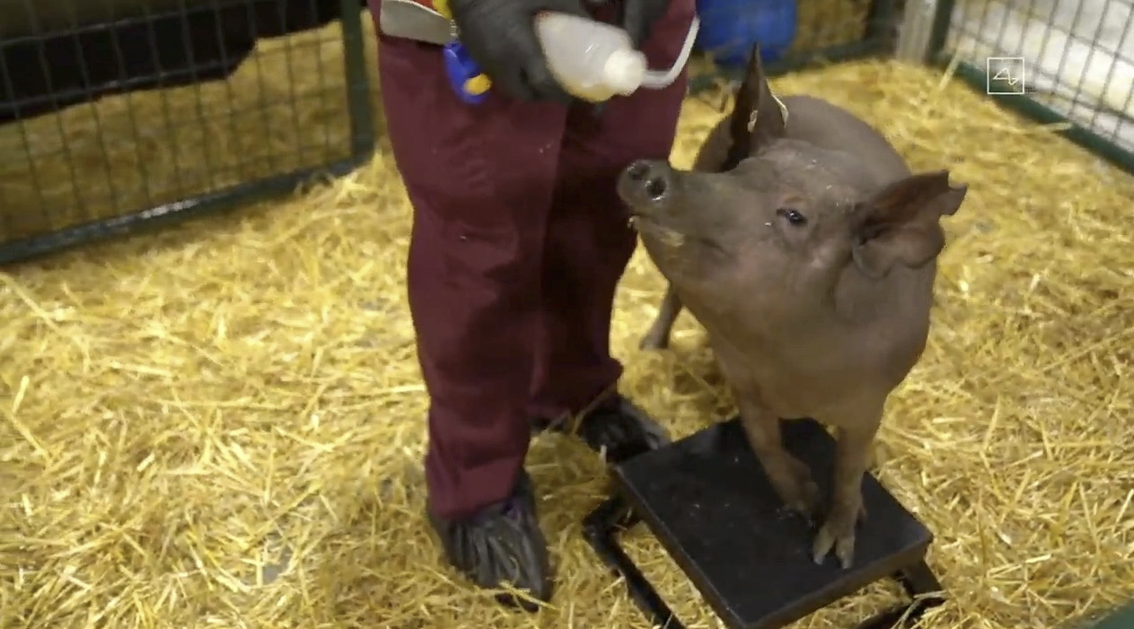 Илон Маск демонстрирует два года назад нейроинтерфейсы на счастливых свинках (реальный кадр)