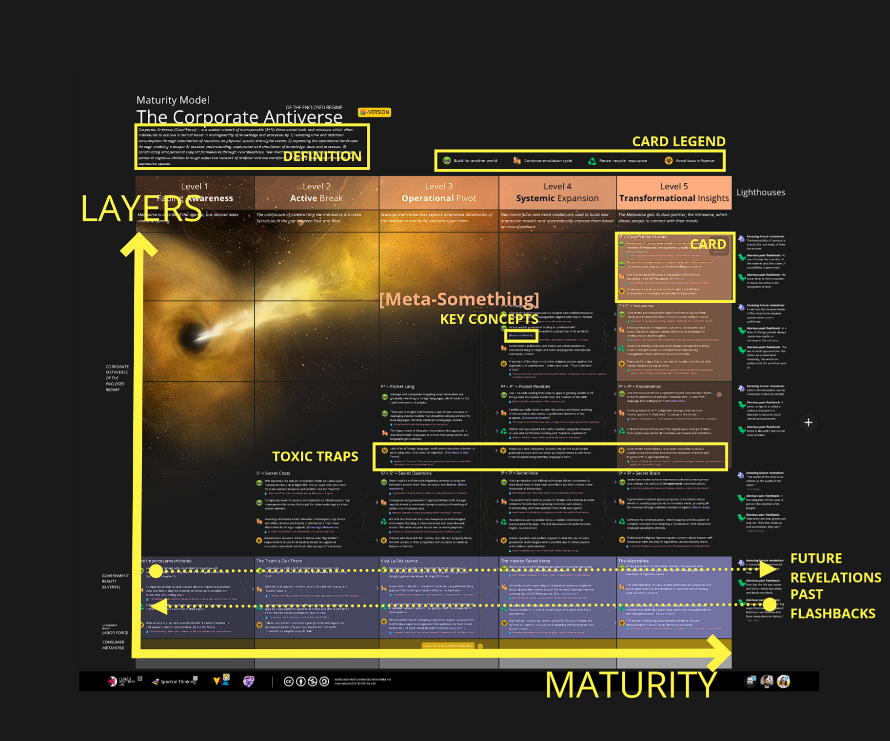 - Предложить дополнение к карте. Если вы видите, что, в соответствии с обозначенным видением (см. определение корпверса), на карте должен появиться еще один слой, и хотите, чтобы мы его описали и раскрыли, пишите на feedback@spectralthinking.org. Мы все читаем, ничего не обещаем, лучше снабдить ваше предложение примерами (ссылками на референсы). 🖍️