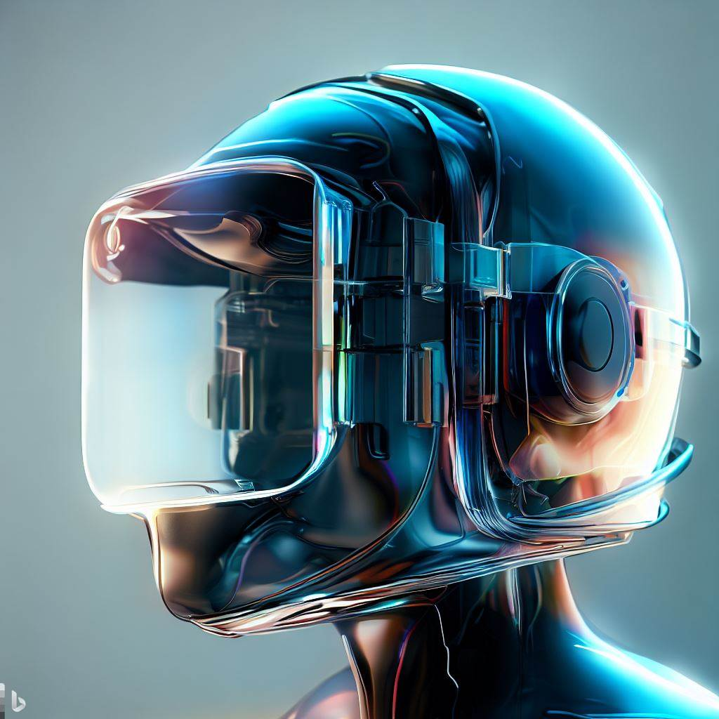 Midjourney’2022 (left), Bing AI’2023 (right): a virtual reality helmet made by apple