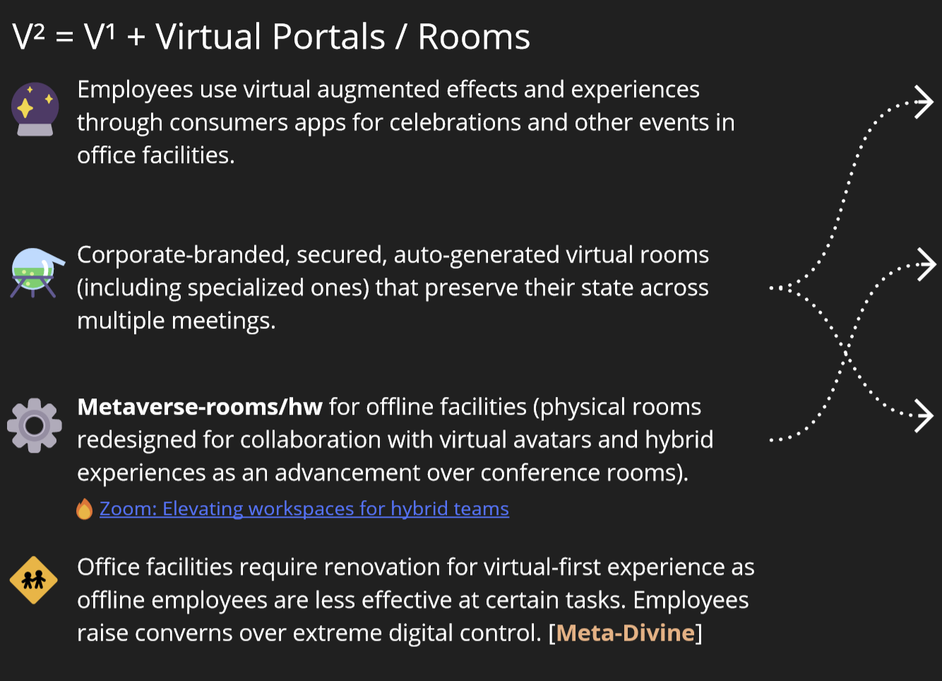 - V² = V¹ + Virtual Portals / Rooms. I tried Logitech’s Project Ghost video chat booth, and work calls on my laptop just can’t compare