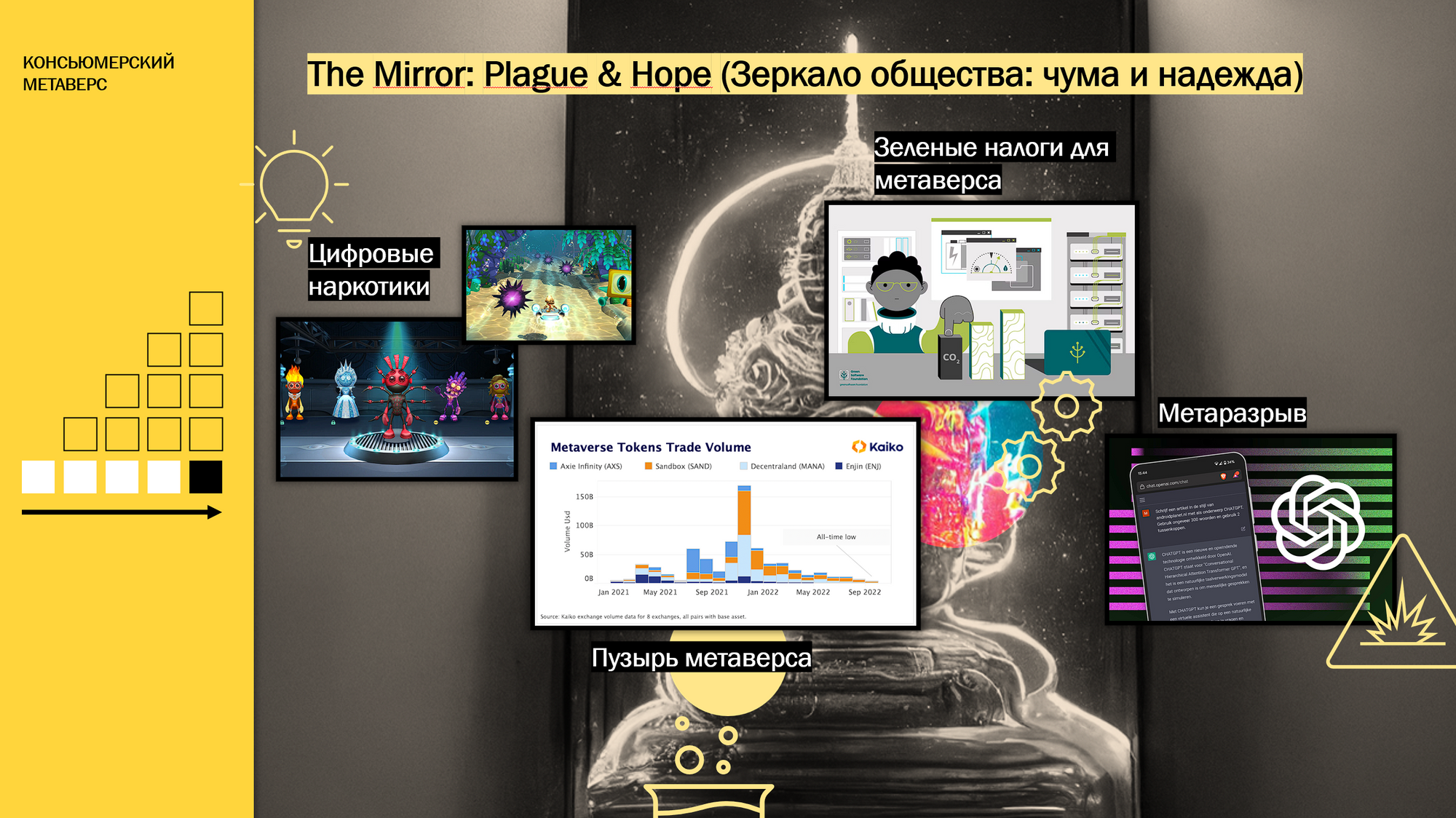 Потребители волнами интереса и вспышками новостей испытывают фрагменты метаверса в своем бытовом контексте и начинают проносить свой опыт в рабочее окружение. Но чем больше о метаверсе говорят ИТ-гиганты и технологический консалтинг, тем больше сопротивления они встречают со стороны консервативного государства. В общем потоке становится трудно разобраться, то ли это ручки глубинного государства, то ли страхи политиков-долгожителей, то ли попытка передела глобальных сфер влияния с пересборкой технологического ландшафта, то ли это все выдуманные теории заговора.