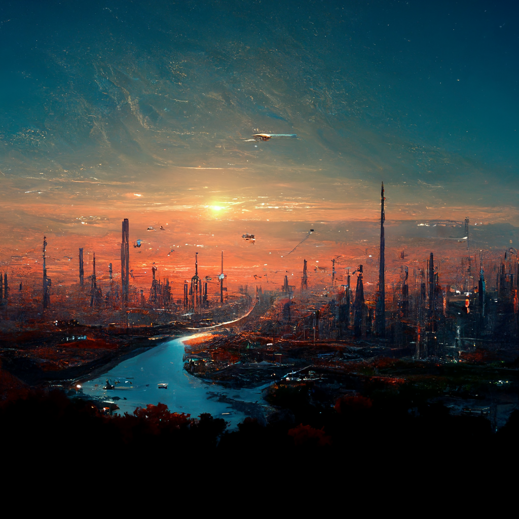 Midjourney’2022 (left), Bing AI’2023 (right): the year 2032