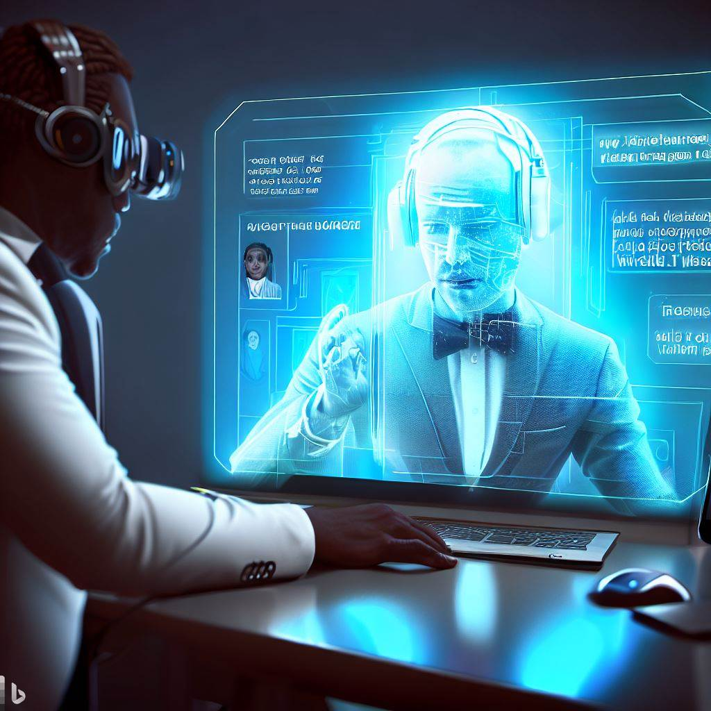 Midjourney’2022 (left), Bing AI’2023 (right): a digital lawyer avatar consulting clients through a zoom call
