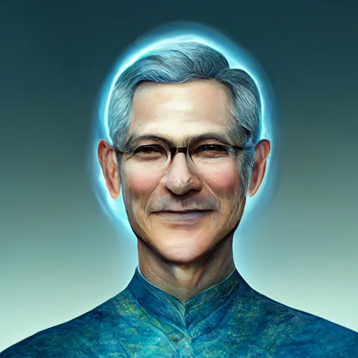 Midjourney’2022 (left), Bing AI’2023 (right): tim cook as avatar in virtual space