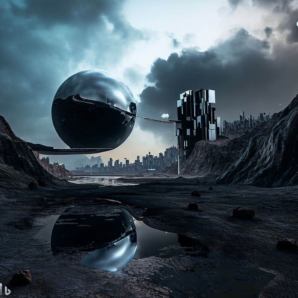 Midjourneyβ2022 (left), Bing AIβ2023 (right): black mirror dual world