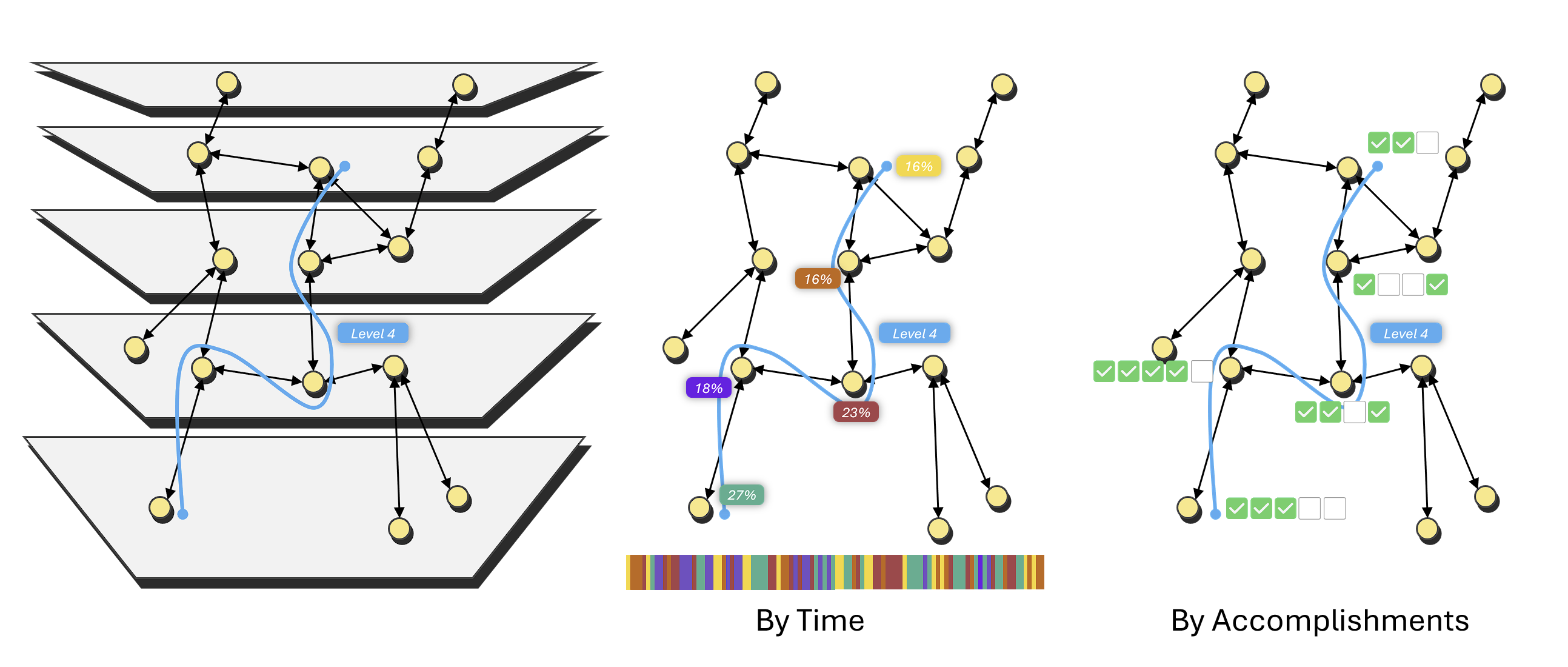 Сделаю небольшое отступление. Я не случайно в самом начале говорил о “поколении, закаленном в онлайн-играх”. Современные игры с ролевым развитием персонажей прошли большой путь и сегодня по продуманности своего сеттинга на порядок опережают ролевые модели карьеры в практически любой организации. Причем речь не только в гибкости выбора пути, но и в том, что уровень игрока и сделанные выборы в развитии персонажа влияют на то, какие части игрового мира открыты. Хотите больше – объединяйтесь в команду, которая коллективно имеет больший запас навыков и которой открыт больший мир.