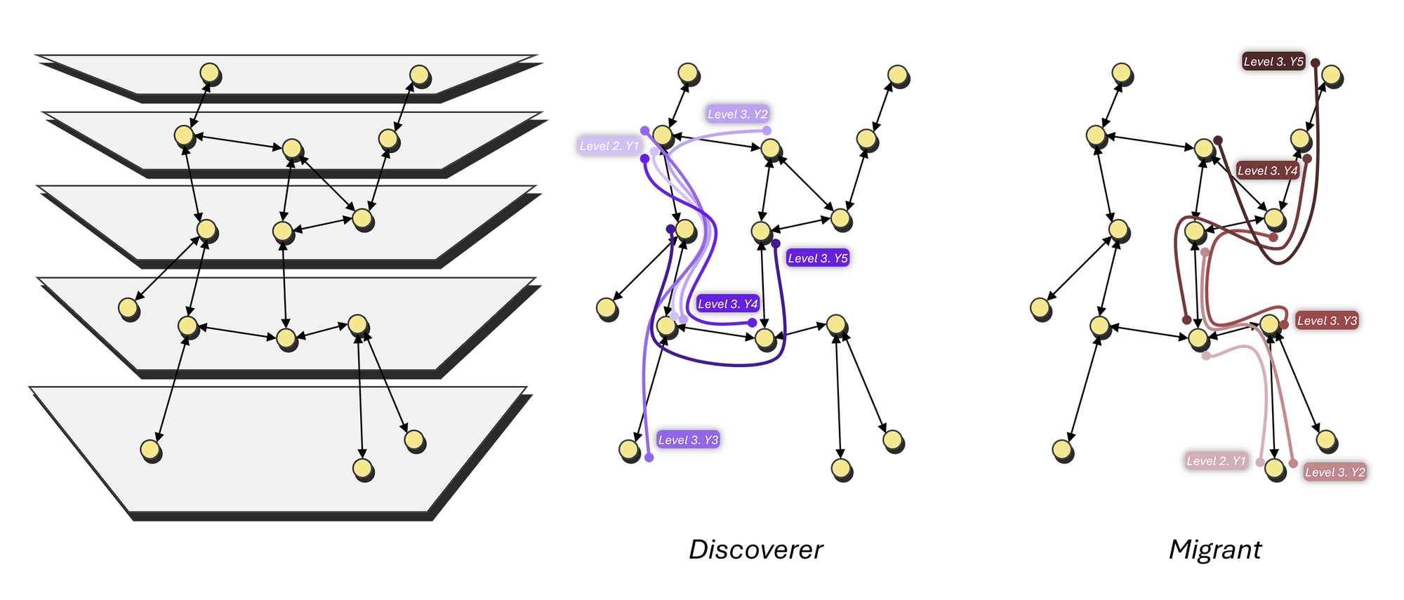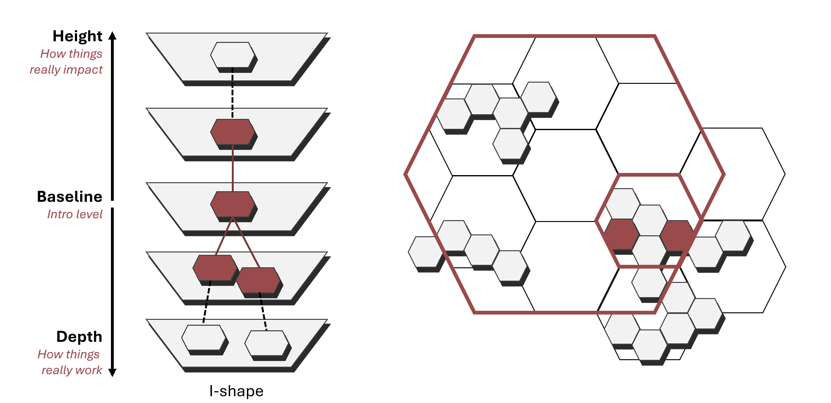 В сценарии исследователя у человека вырабатывается некоторая база, вокруг которой линия специалиста на графе навыков начинает извиваться, пробуя разные направления до тех пор, пока человек не сделает ставку. Но при этом мы честно говорим, что все “отпавшие” хвосты – это важный опыт, но устаревший и самое ценное, что человек из него вынес – это связи и картина мира.