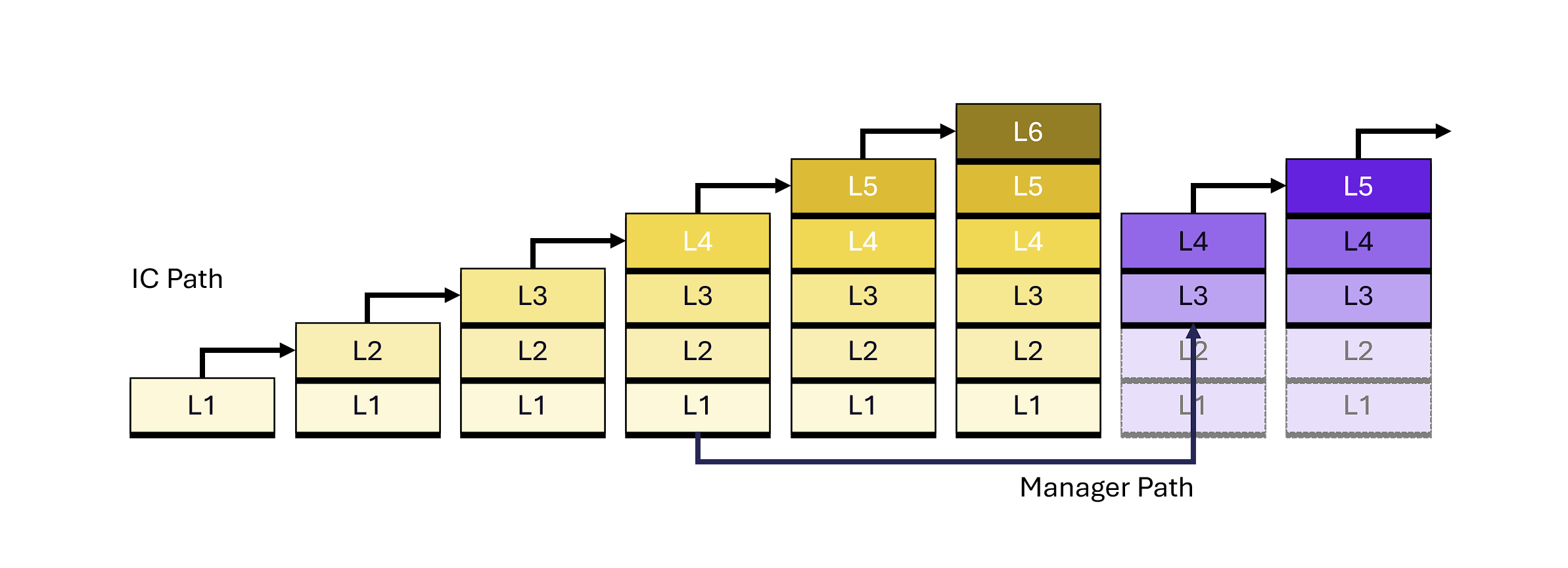 В любой специализации у вас доступно два пути: либо вы линейный сотрудник, он же IC (individual contributor), либо вы менеджер, управляющий другими сотрудниками. По мере роста компетенции, влияния, уважухи, стажа работы и т.п. ваша профессия прирастает атрибутами старшинства.