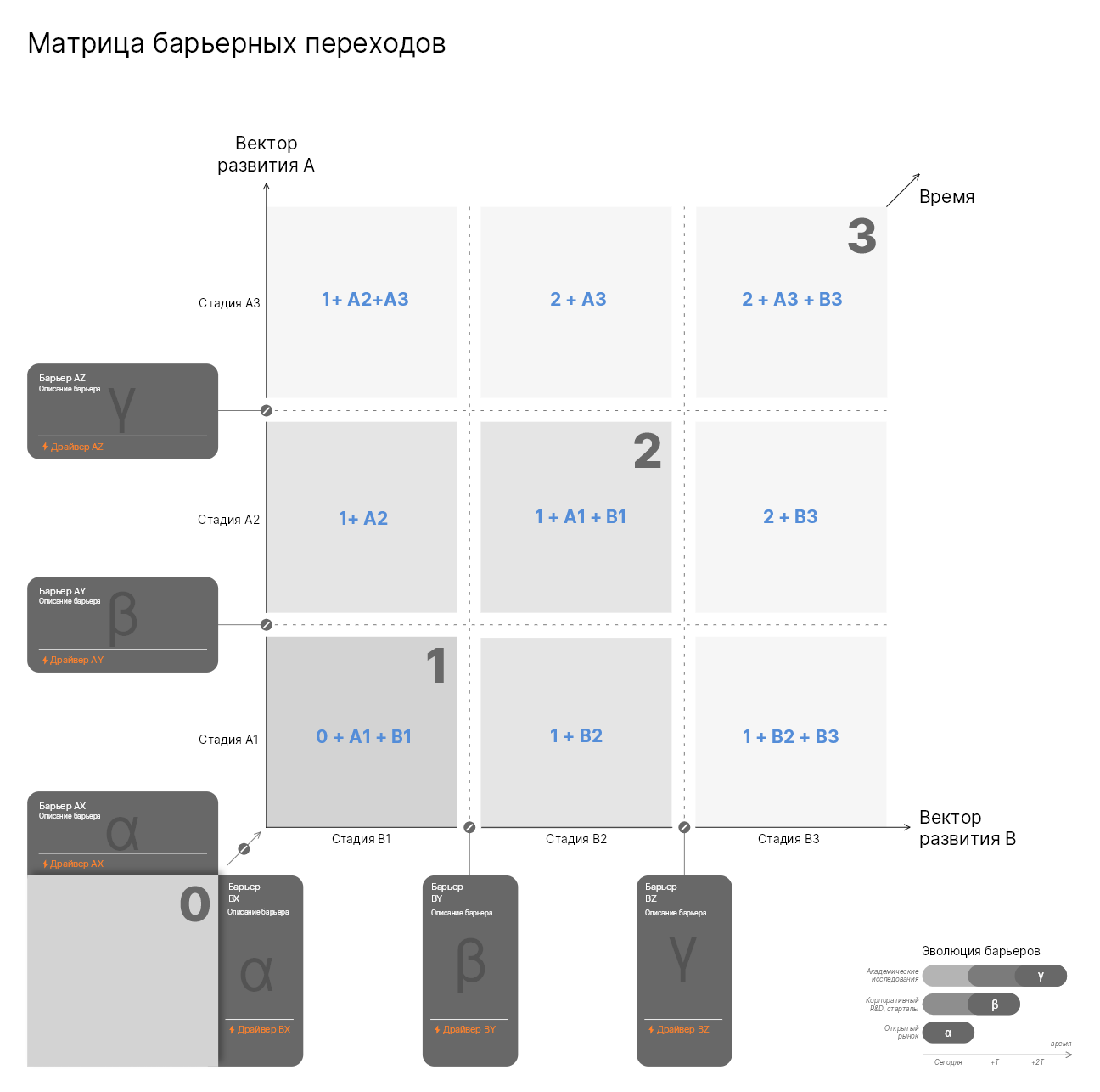 Π€ΡΠ΅ΠΉΠΌΠ²ΠΎΡΠΊ βΠΌΠ°ΡΡΠΈΡΠ° Π±Π°ΡΡΠ΅ΡΠ½ΡΡ ΠΏΠ΅ΡΠ΅Ρ ΠΎΠ΄ΠΎΠ²β (Barrier Transition Matrix), ΡΠ°Π±Π»ΠΎΠ½Ρ ΠΈ ΡΡΠΎ ΡΡΠΊΠΎΠ²ΠΎΠ΄ΡΡΠ²ΠΎ ΡΠΎΠ·Π΄Π°Π½Ρ ΠΠΎΠ½ΡΡΠ°Π½ΡΠΈΠ½ΠΎΠΌ ΠΠΈΡΠΈΠ½ΡΠΊΠΈΠΌ ΠΈ ΡΠ°ΡΠΏΡΠΎΡΡΡΠ°Π½ΡΡΡΡΡ ΠΏΠΎΠ΄ Π»ΠΈΡΠ΅Π½Π·ΠΈΠ΅ΠΉ Creative Commons Attribution-NonCommercial-ShareAlike 4.0 International.