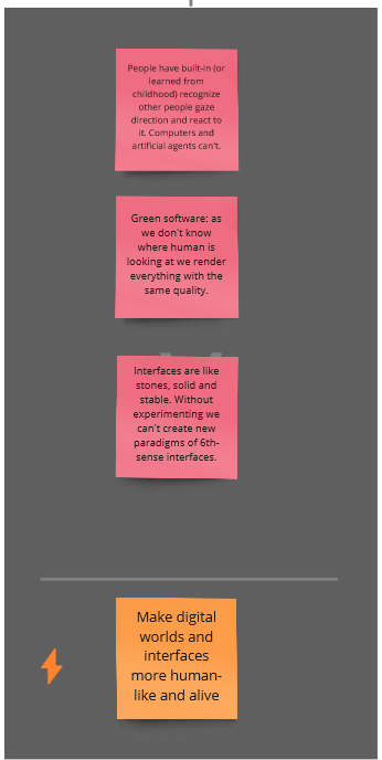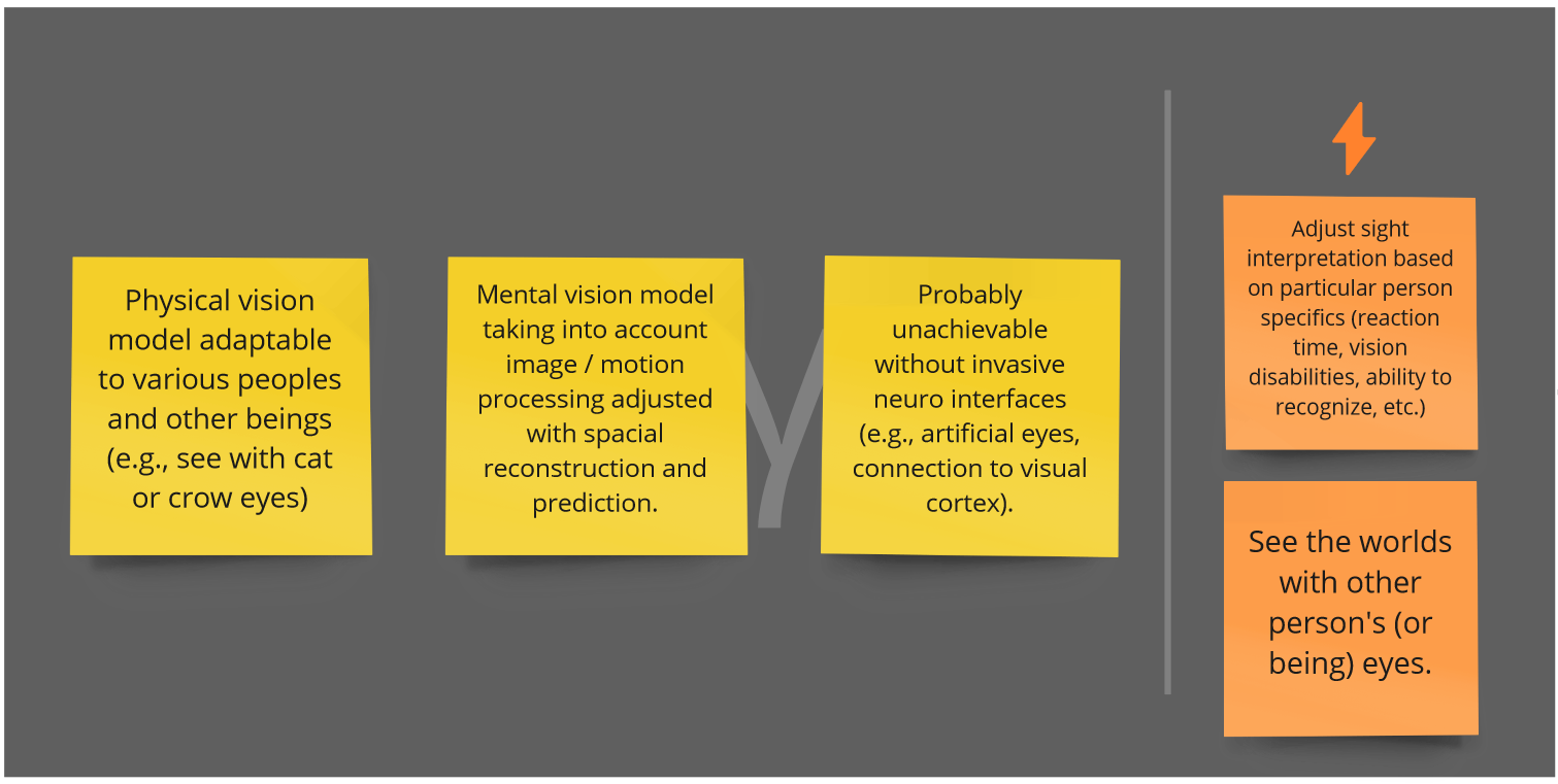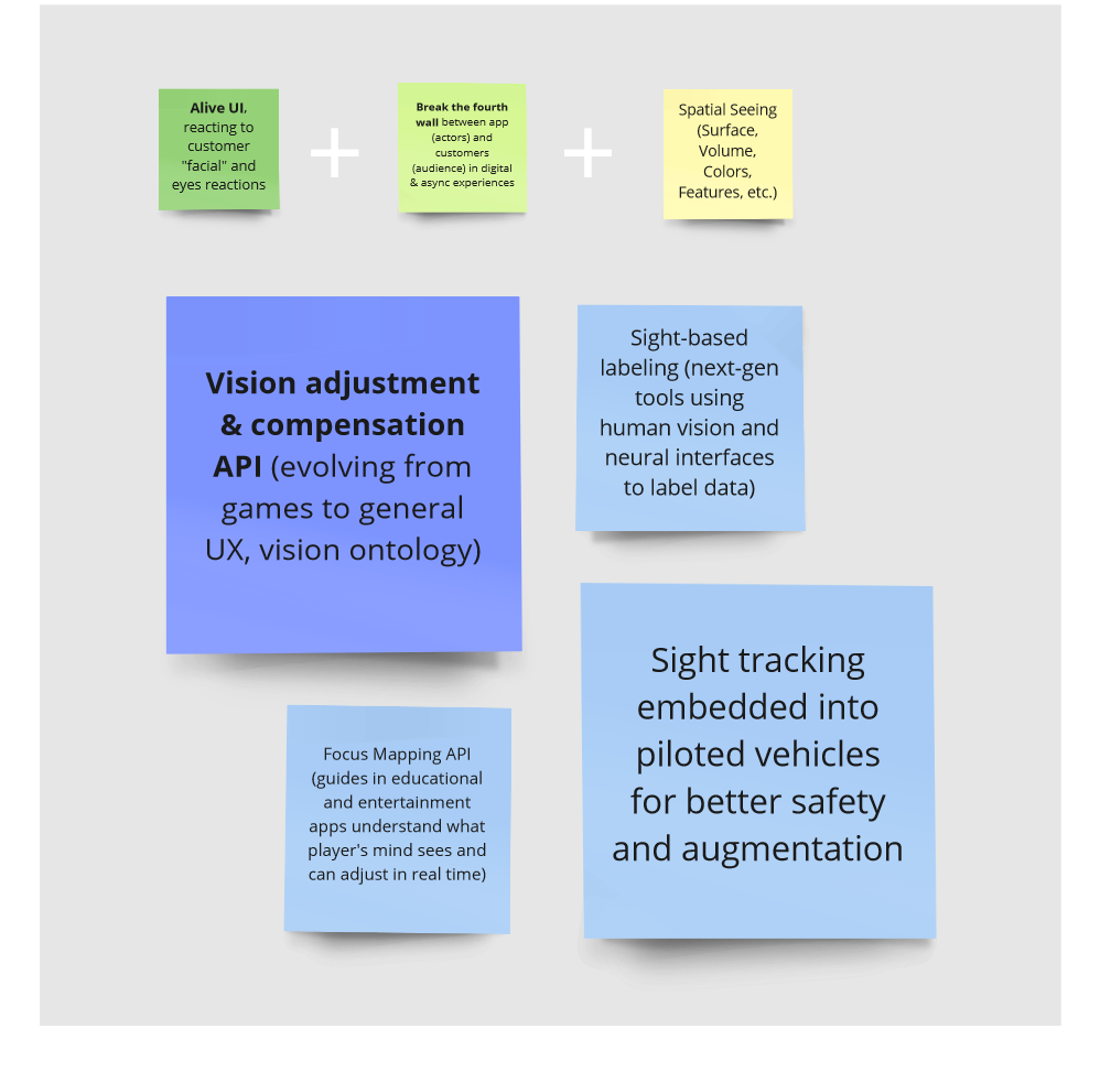 Π’Π°ΠΊ Ρ Π½Π°Ρ ΠΏΠΎΡΠ»Π΅Π΄ΠΎΠ²Π°ΡΠ΅Π»ΡΠ½ΠΎ ΠΏΠΎΡΠ²Π»ΡΡΡΡΡ ΠΈΠ½ΡΠ΅ΡΡΠ΅ΠΉΡΡ ΡΠΏΡΠ°Π²Π»ΡΠ΅ΠΌΡΠ΅ Π³Π»Π°Π·Π°ΠΌΠΈ, Π±ΠΎΠ»Π΅Π΅ ΠΏΡΠΎΠ΄Π²ΠΈΠ½ΡΡΡΠ΅ ΡΡΠ΅ΠΊΠ΅ΡΡ Π²Π·Π³Π»ΡΠ΄Π°, βΡΡΠ½Π½Π΅Π»ΡΠ½ΡΠ΅ ΠΌΠΈΡΡβ Ρ ΡΠΎΠΊΠ°Π»ΡΠ½ΡΠΌ ΡΠ΅Π½Π΄Π΅ΡΠΈΠ½Π³ΠΎΠΌ, Π±ΠΎΠ»Π΅Π΅ ΡΠΎΠ²Π΅ΡΡΠ΅Π½Π½ΡΠ΅ API (ΡΠΊΠΎΡΠ΅Π΅ Π²ΡΠ΅Π³ΠΎ Π² ΡΠ»Π΅ΠΌΠ°Ρ ΡΠΎ Π²ΡΡΡΠΎΠ΅Π½Π½ΡΠΌΠΈ ΡΡΠ΅ΠΊΠ΅ΡΠ°ΠΌΠΈ) Π΄Π»Ρ Π°Π΄Π°ΠΏΡΠ°ΡΠΈΠΈ ΠΏΠΎΠ΄ Π½Π°ΠΏΡΠ°Π²Π»Π΅Π½ΠΈΠ΅ Π²Π·Π³Π»ΡΠ΄Π°, Π½Π΅ΠΉΡΠΎ-ΡΡΠ΅ΠΊΠ΅ΡΡ Π·ΡΠ΅Π½ΠΈΡ, βΠ²ΠΎΡΠΎΠ½ΡΠΈ ΠΌΠΈΡΡβ Π² ΠΊΠ°ΡΡΠ°Π½Π΅Π΄ΠΎΠ²ΡΠΊΠΎΠΉ Π»ΠΎΠ³ΠΈΠΊΠ΅ ΡΠΏΡΠ°Π²Π»ΡΠ΅ΠΌΡΡ ΡΠ½ΠΎΠ²ΠΈΠ΄Π΅Π½ΠΈΠΉ, ΠΎΠ½ΡΠΎΠ»ΠΎΠ³ΠΈΡ Π·ΡΠ΅Π½ΠΈΡ (ΠΊΠΎΠ½ΠΊΡΠ΅ΡΠ½ΠΎΠ³ΠΎ ΡΠ΅Π»ΠΎΠ²Π΅ΠΊΠ°) ΠΊΠ°ΠΊ API ΠΈ βΡΠΎΠ½Π½ΡΠ΅ ΠΌΠΈΡΡβ. Β Β Β