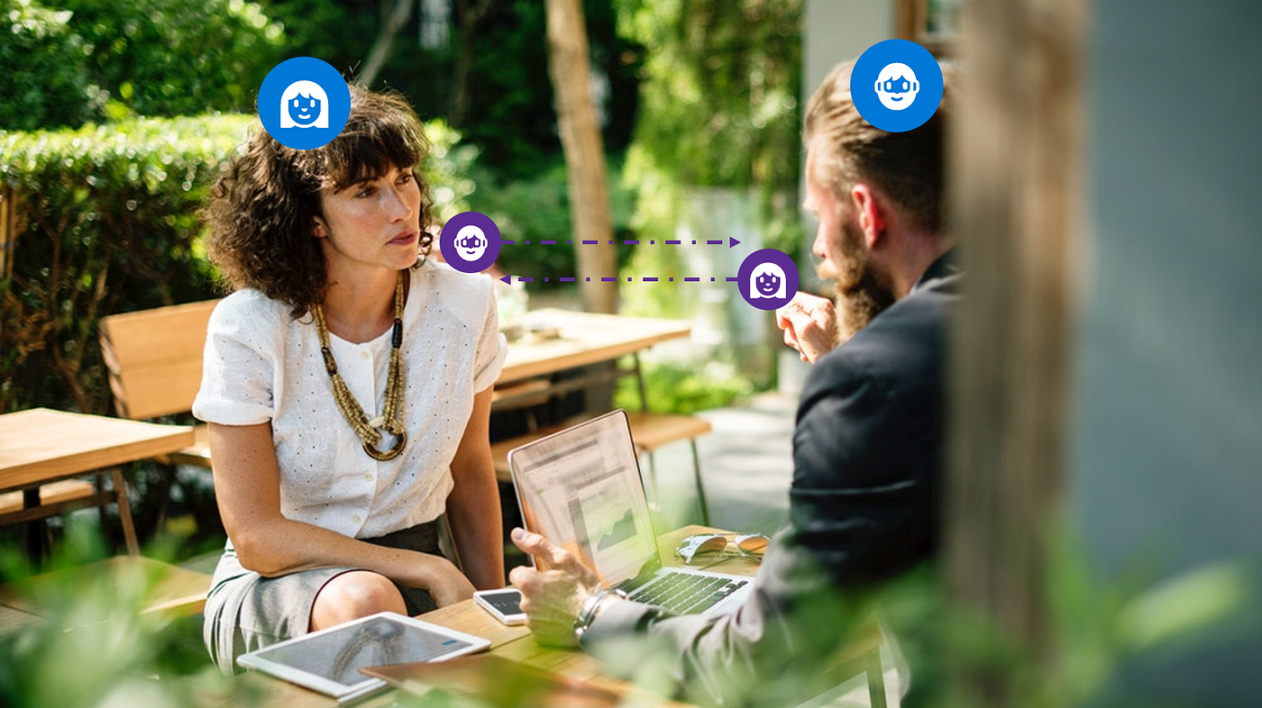 Imagine that we are designing interaction between two people (or groups of people). A direct one like “a manager meets with a client in the bank office”, or an indirect one like “an e-commerce website proxying end-customers and merchants”.