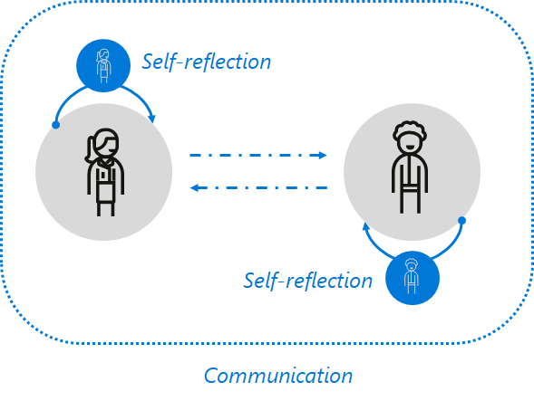 Usually, we try to identify the goals of each party (“self-reflection”) in that interaction. And then we use our designer experience and tricks, and magic to align these two points of view into one communication. I mean, we behave like we are the smartest persons and are capable of connecting these two people and their goals in a right way. I guess, sometimes we fail. :)