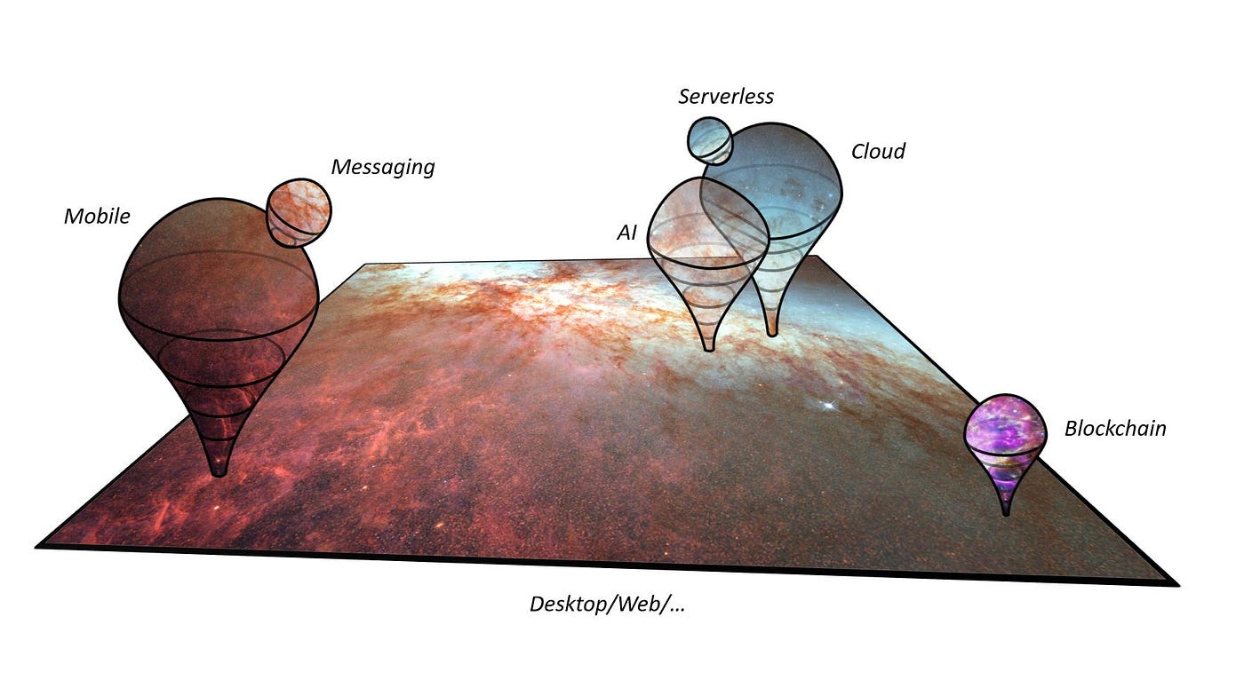 Изобразить это все достоверно очень сложно, но, надеюсь, аналогия понятна. Параллельно существует множество экосистем, одни вырастают из других. А точка зрения (или притяжения) конкретного наблюдателя влияет на то, как он осознает происходящие рядом или вдалеке процессы.