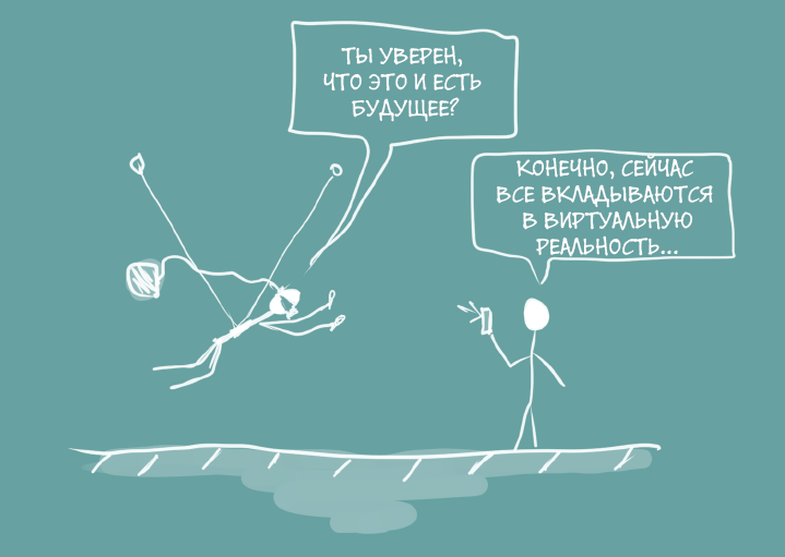 Я думаю, через года два-три технологический паззл виртуальной реальности сложится уже во втором контуре (первый — вывод реалистичного изображения). Представьте себе, что вы Марго, юная барышня, жутко боящаяся высоты. Сейчас уже делают решения, когда вас подвешивают на тросики, надевают шлем, спереди ставят вентилятор и пускают в полет. Крики, страхи, снизу пролетает стая стерхов и Владимир Владимирович на дельтаплане.
