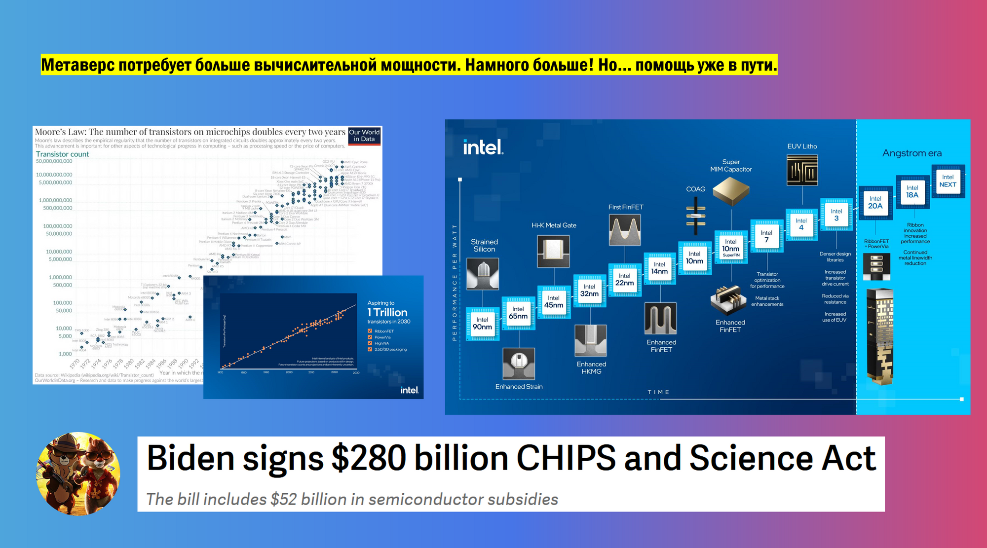 У Мэтью Болла вышла отличная статья, поясняющая, почему метаверс все никак не наступит. Главная проблема все та же, что и пять лет назад с AR/VR: упаковать суперкомпьютер в 150-400 граммовое устройство с экраном, сенсорами, камерами и другими прибамбасами.