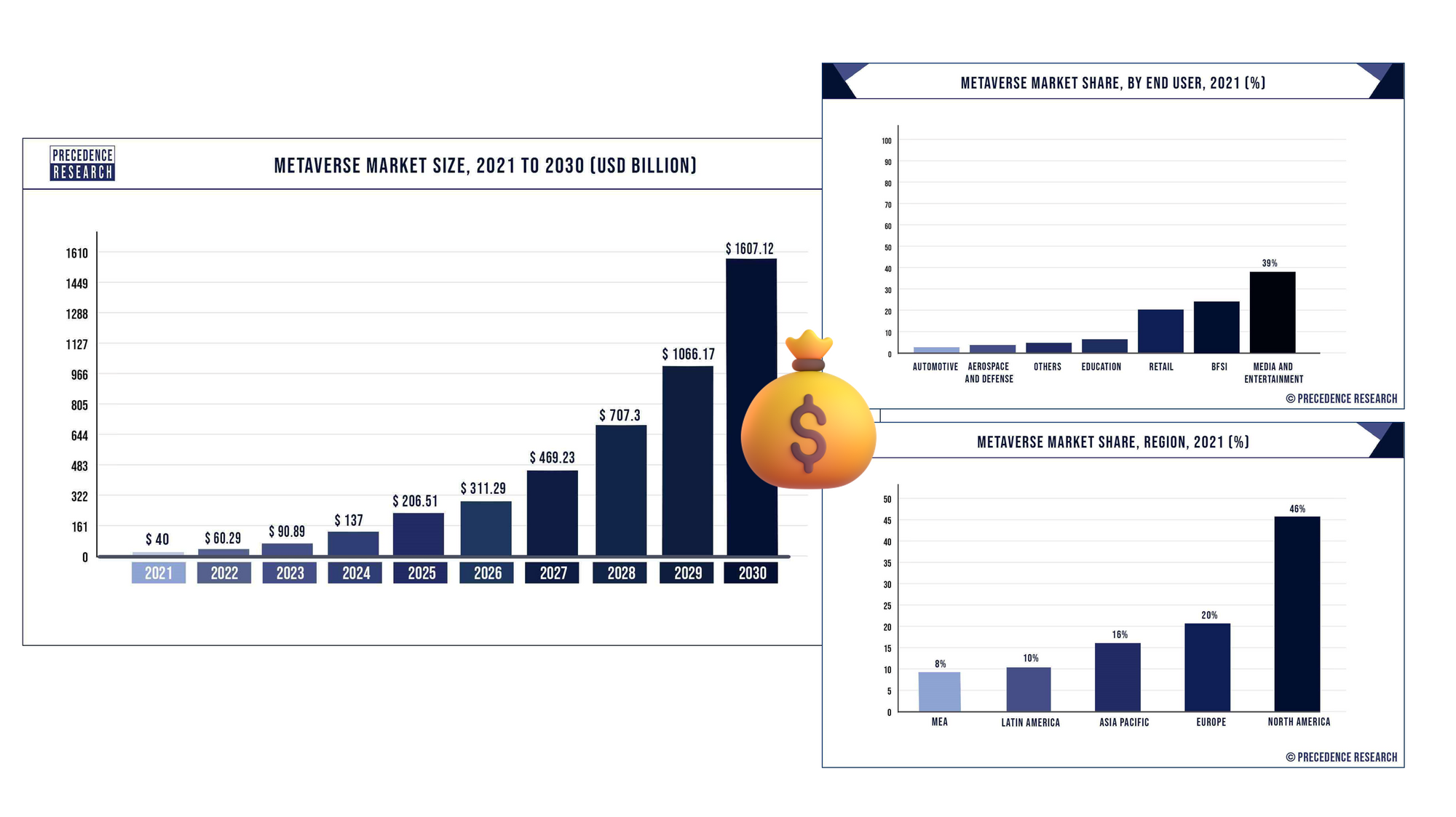Аналитические агентства нам обещают, что рынок метаверса будет триллионным в долларах США к 2030 году: “слишком большой рынок, чтобы игнорировать.”